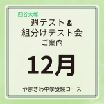 - 【12月】週テスト&組分けテスト会実施案内12月週テスト&組分けテスト会 週テスト及び公開組分けテストで実力アップ! やまぎわ中学受験コースで使用してい… 続きを読む: 【12月】週テスト&組分けテスト会実施案内