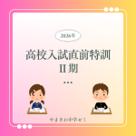 - 2026年 高校入試直前講習(Ⅱ期)高校入試直前講習のご案内 2026年 高校入試直前講習(Ⅱ期)のご案内です。 全10回(1回2時間)! 充実の… 続きを読む: 2026年 高校入試直前講習(Ⅱ期)