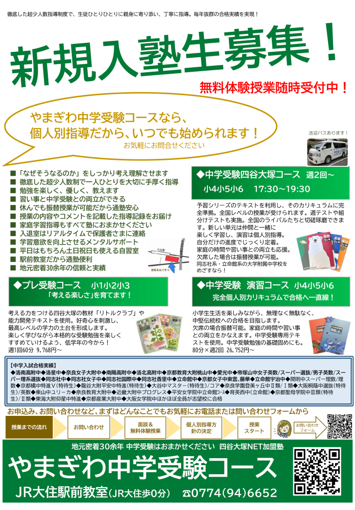 - やまぎわ中学受験コース、入塾生募集中!中学受験コースについて詳しくはこちら⇒中学受験コース ⇒案内PDF