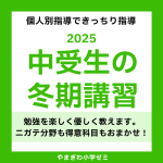 やまぎわ中学受験コース冬期講習申込受付中!⇒小学ゼミ冬期講習2025案内pdf⇒中学受験演習コース冬期講習2025案内pdf⇒小学ゼミ冬期講習2025料金等一覧pdf...