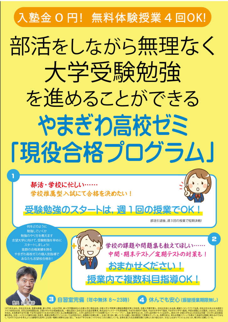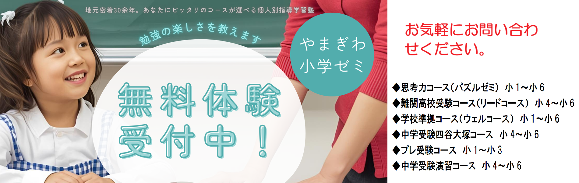 やまぎわ高校ゼミ冬期講習申込受付中!中学ゼミの冬期講習はこちら⇒中学ゼミ中学受験コースの冬期講習はこちら⇒中学受験コース小学ゼミの冬期講習はこちら⇒小学ゼミ苦手分...