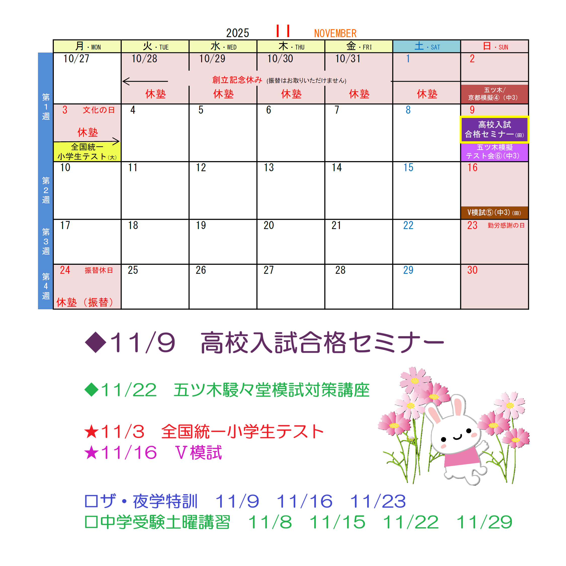 ●11/8・11/15・11/22・11/29 詳しくはこちら土曜講習