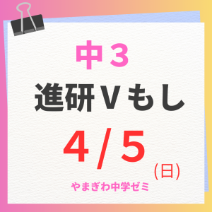 第1回V模試 中学3年生対象 第1回V模試のご案内です。 【日時】2026年4月5日(日) 9:00~13:25 【試験場】やまぎわ中学ゼミ 新田辺駅前教室 【受験科目】英・数・国・理・社 【対象】中学3年生(全員受験で […]