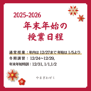 ⛄冬の英単語暗記大会、開催しました! 2024年12月15日は冬の英単語暗記大会でした。皆さんよく頑張りました‼🥇 今回で9回目となる、英単語暗記大会ですが、今回も13:00~17:00にたくさんの方が参加してくれました […]