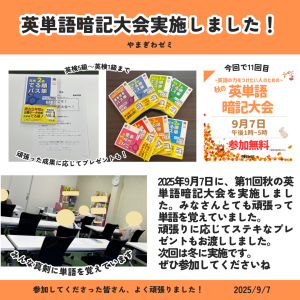 やまぎわゼミ通信 第57号 発行しました! やまぎわゼミ通信第57号発行しました。やまぎわゼミでは、毎月ゼミ通信を発行し、最新の進学情報や学習情報をお届けしています。 ゼミ通信第57号pdfはこちら⇒ゼミ通信第57号 い […]
