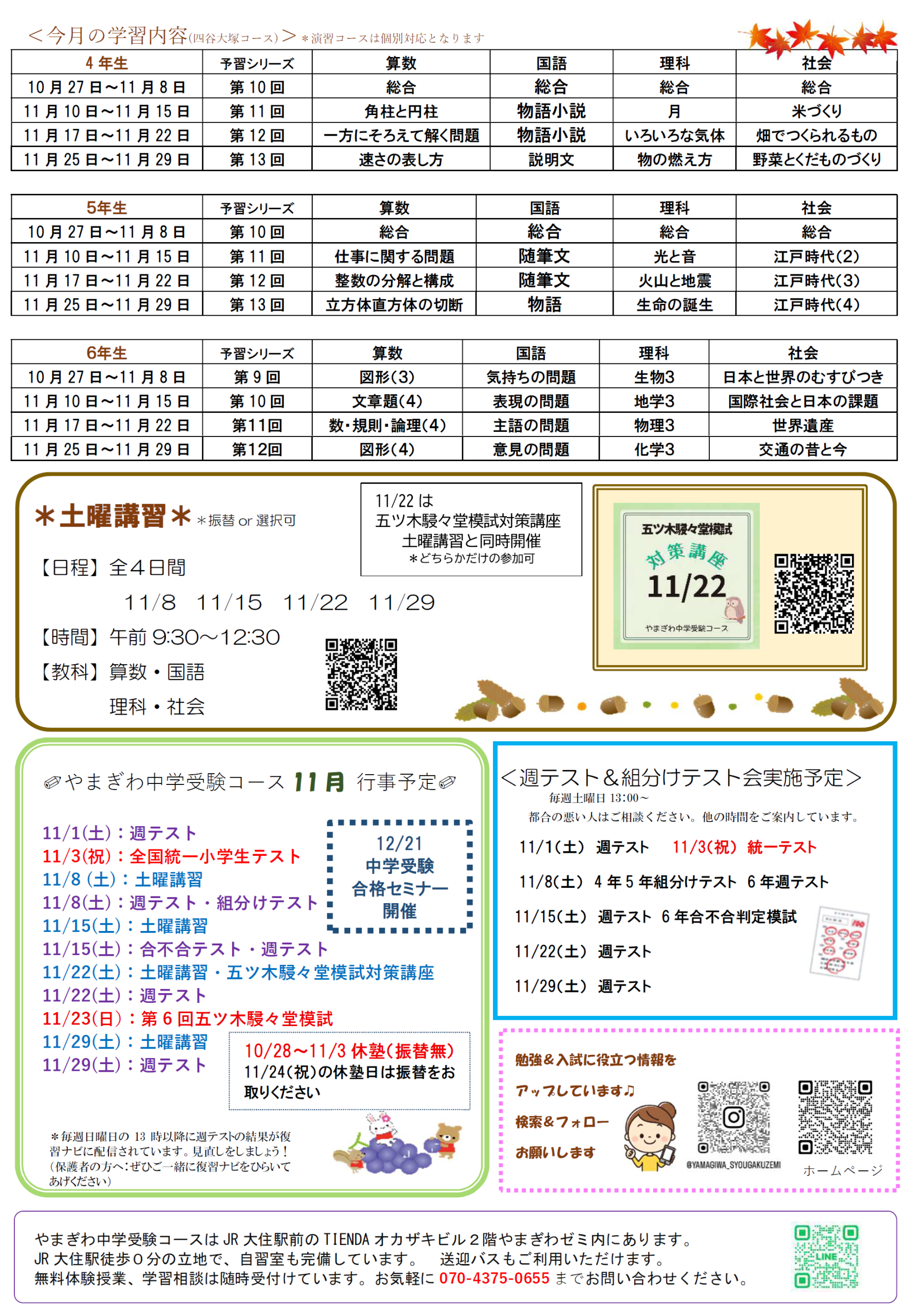 ◎11月五ツ木駸々堂模試対策講座のご案内