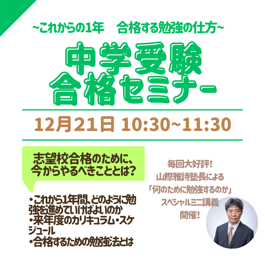 冬の中学入試合格セミナーの案内書はこちらから⇒中学入試合格セミナー