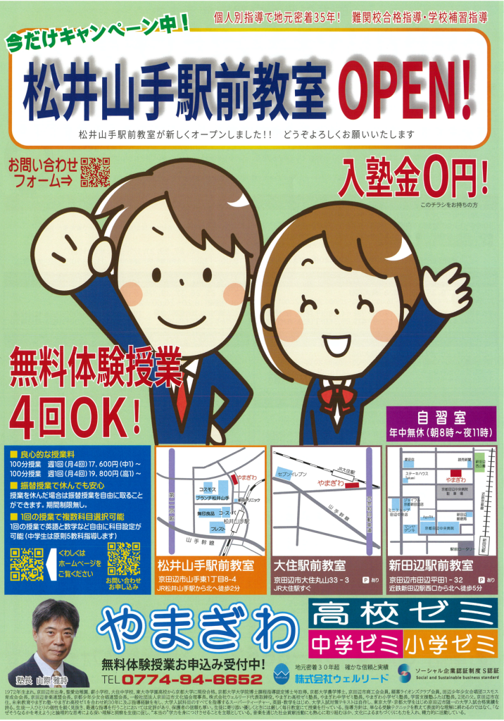 京田辺市 の小学中学高校個人別指導塾 やまぎわゼミ