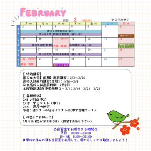 ◆休塾(振替)の記載がある日は振替授業をお取りください。(振替日をご連絡ください)