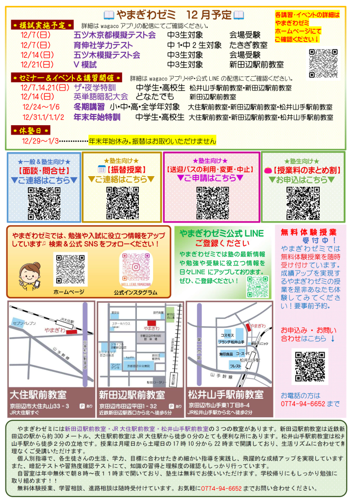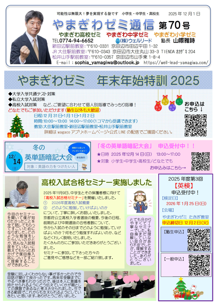 やまぎわゼミでは、毎月ゼミ通信を発行し、最新の進学情報や学習情報をお届けしています。